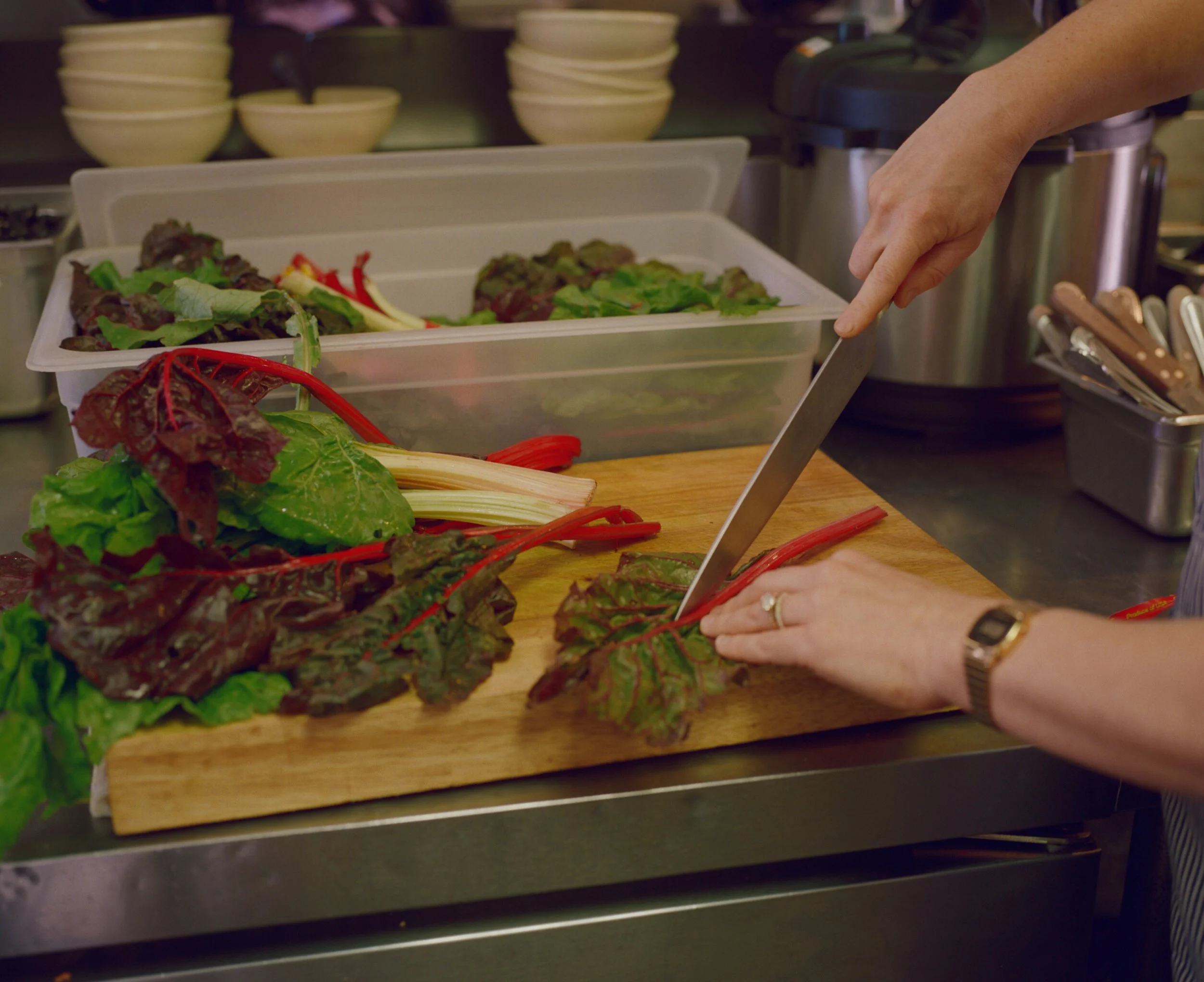 It’s really different. And honestly, it’s a very difficult thing to translate because Home cooking, where you make everything from scratch in the moment, is worlds apart from preparing large batches for many people. I’ve always been an intuitive cook—I still am—and I don’t really follow recipes. Having to develop these recipes that you could multiply into big batches as just such a big learning curve.
